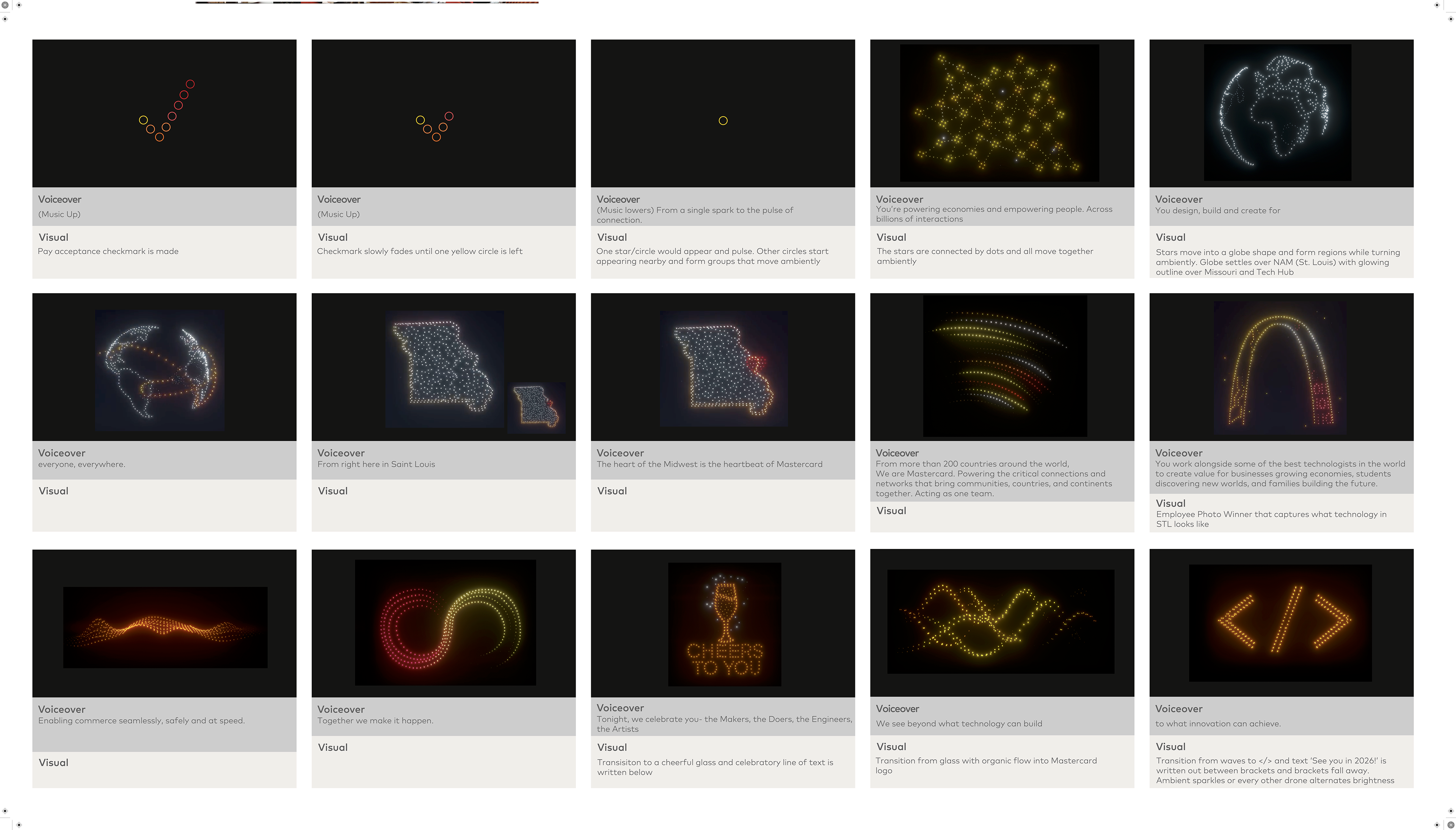 I then pinpointed the key themes and crafted the opening of the drone show around a speech our President and CTO, Ed McLaughlin, gave to kick off the drone show.